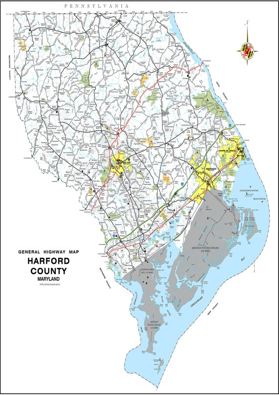 Harford County, Maryland, County Map. | County map, Map, Harford