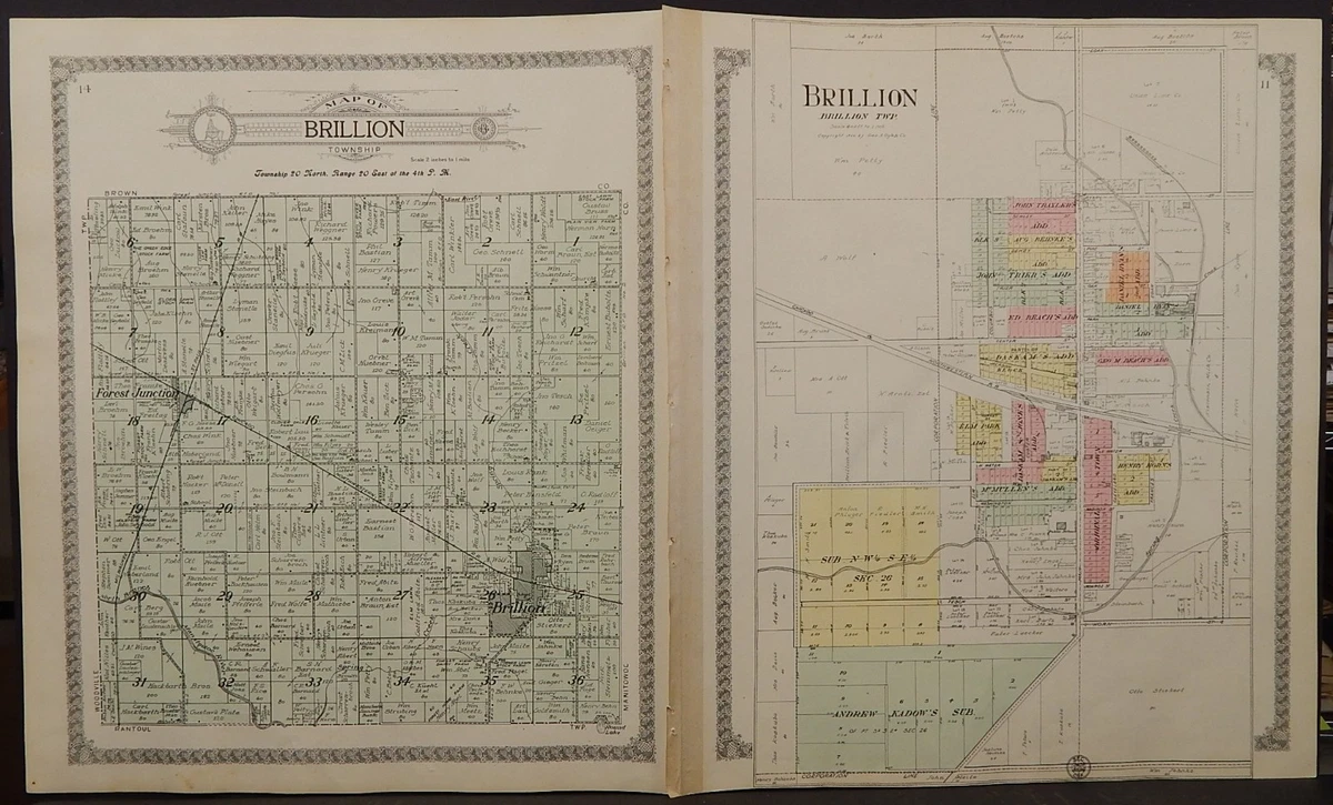 Wisconsin Calumet County Map Harrison Woodville Township 1920 Dbl