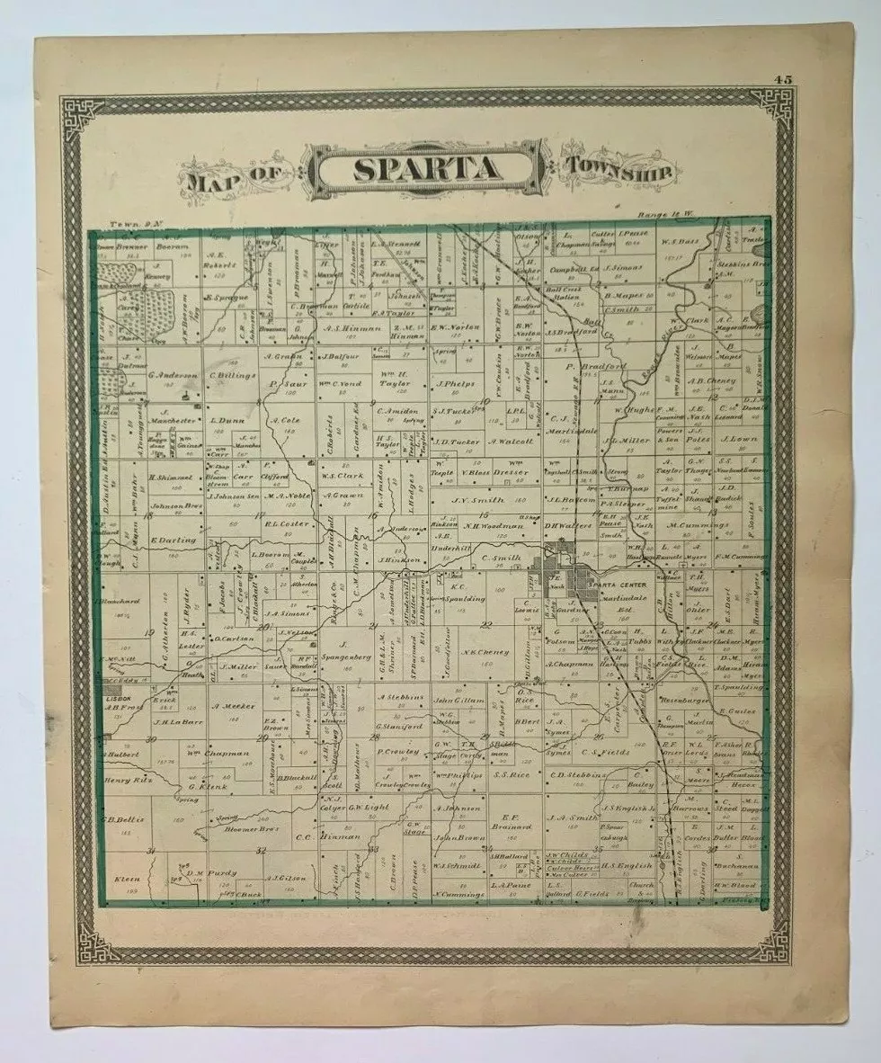 1876 org. Plat Atlas pg. SPARTA & TYRONE TOWNSHIP, CASNOVIA, Kent