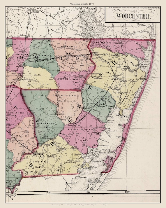 Worcester County 1873 Custom Map Maryland State Atlas Etsy Denmark